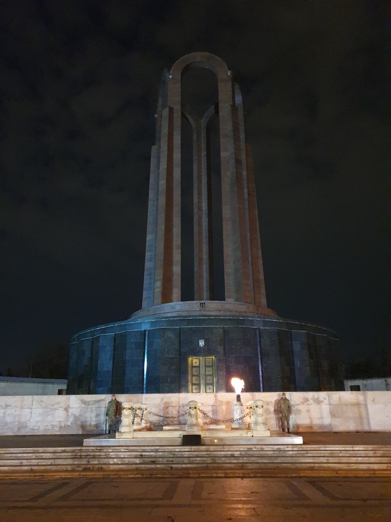 At the top, there’s a big army memorial building, honoring our heroes from the world wars and the Romanian independence war of 1877. A burning torch stands always lit at the base of the monument, guarded by two soldiers with rifles in hands. If you run enough around the mausoleum you might even catch the change of guards. It’s a formal ceremony led by a commander that gives the order; the two guards salute, present arms, and march out of their positions, replaced by two other soldiers.