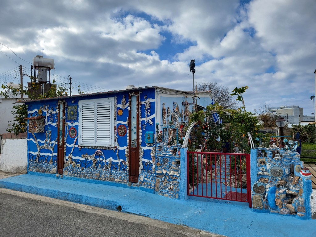 One crazy house in a neighborhood outside the center In Paphos, I ran through neighborhoods that I never would have seen if I had stuck to the main tourist areas. I stumbled upon quiet streets with colorful houses, and I found little cafes and bakeries that I never would have known existed.